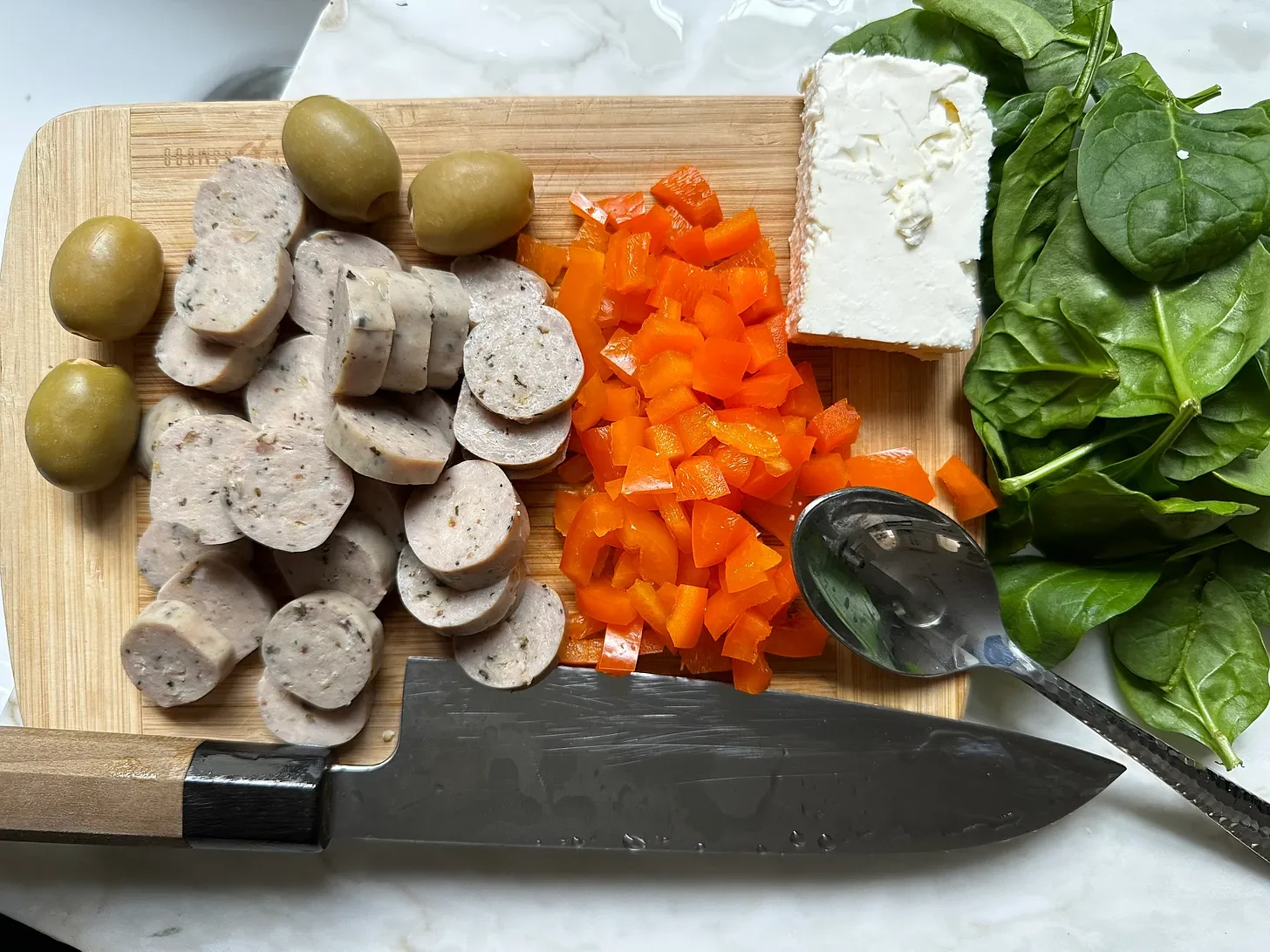 Today, realizing I was short on time and needed a quick lunch before heading out to run errands, I found myself sitting in front of the fridge feeling frustrated. I was hungry and reluctant to spend a lot of time preparing something. Just as I was about to close the fridge and skip lunch altogether, an Amazon delivery arrived. Inside the package was a Greek spice blend that TikTok shamelessly influenced me to purchase, and that's where the inspiration for this pizza began.